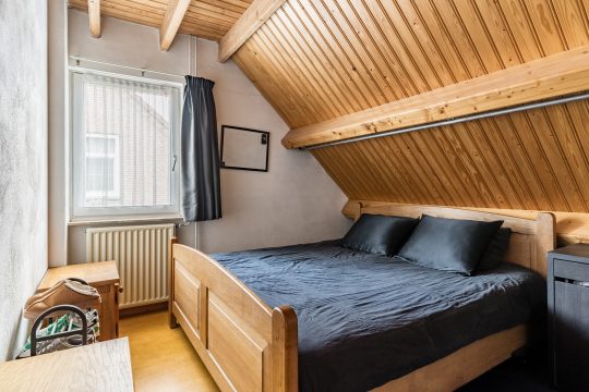 De tweede en derde slaapkamer zijn beide ruim van formaat en hebben een marmoleumvloer, stucwerkwanden en een balkenplafond met kraaldelen.