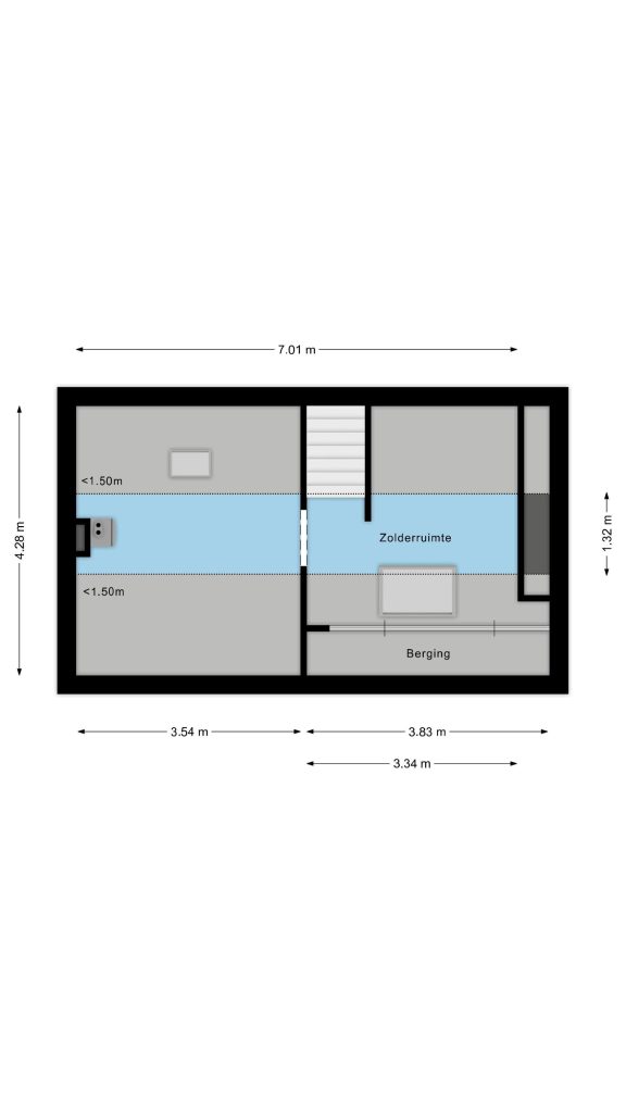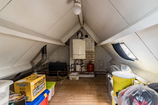 Via de vaste trap in de masterbedroom kom je op de ruime zolderverdieping met stahoogte. Deze verdieping huisvest de cv-installatie voor de hoofdbouw en biedt daarnaast volop mogelijkheden voor opslag, hobby of het creëren van een extra slaapkamer.