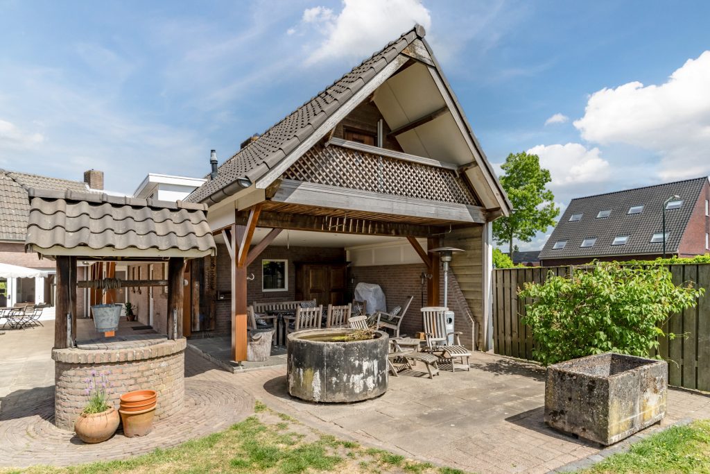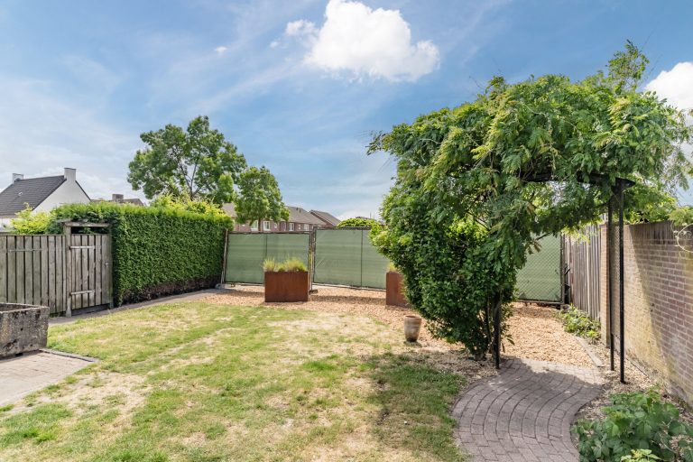 De royale achtertuin, gelegen op het zonnige zuidwesten, is fraai aangelegd met een gazon, volwassen beplanting en nette bestrating. De grote terrasoverkapping maakt het mogelijk om het hele jaar door van het buitenleven te genieten. Een achterom met poort zorgt voor extra gemak en bereikbaarheid.