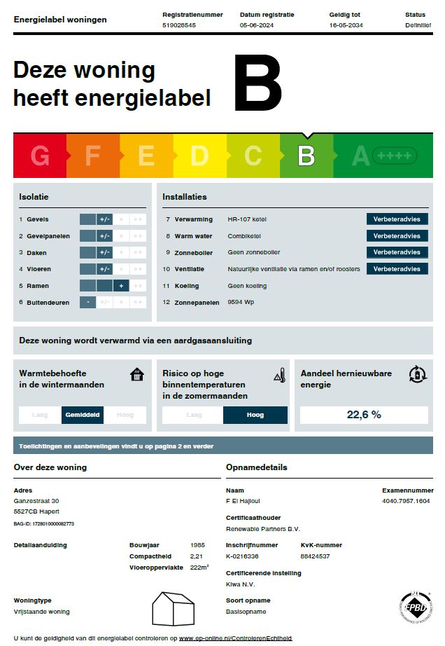 – de woning is voorzien van 24 zonnepanelen (400 Wp per stuk).