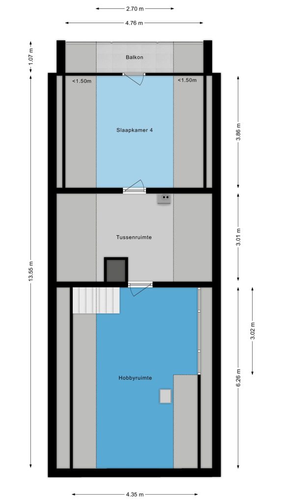 Op deze verdieping liggen ook een bergruimte met de cv-installatie voor de aanbouw en het souterrain, evenals een vierde slaapkamer met een sfeervolle houten vloer en een deur naar het balkon aan de achterzijde van de woning.