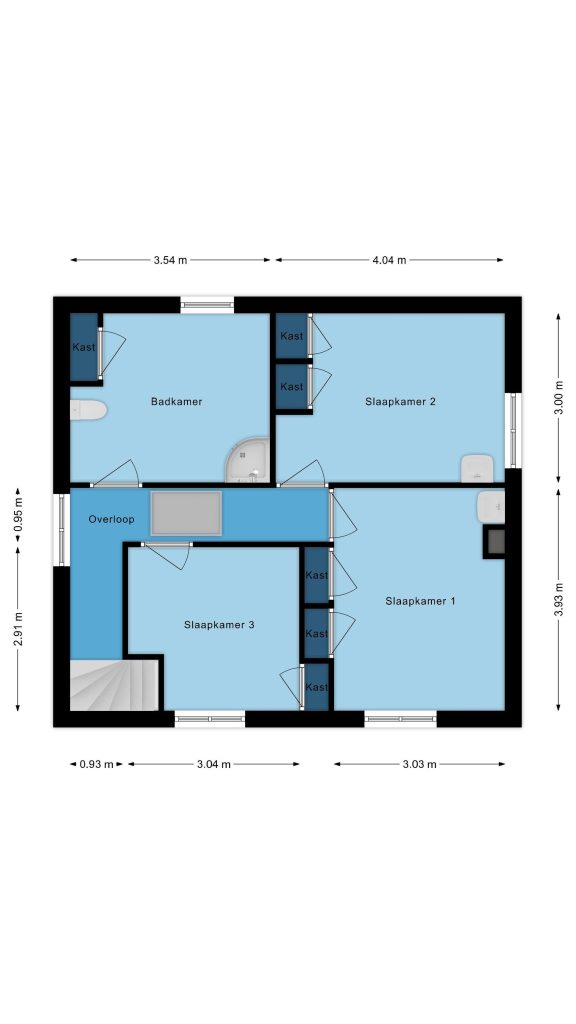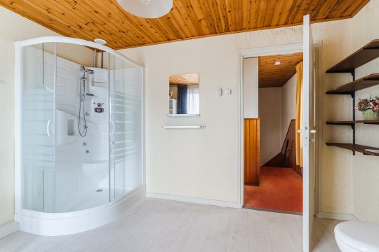 De riante overloop geeft toegang tot maar liefst vier slaapkamers. Alle kamers zijn goed bemeten en bieden veel lichtinval. Eén van de slaapkamers beschikt over een eigen douchecabine en toilet, wat extra comfort en flexibiliteit biedt – bijvoorbeeld voor logees of een thuiswonend kind dat graag wat privacy heeft.