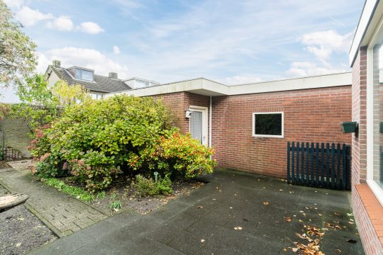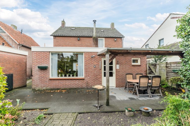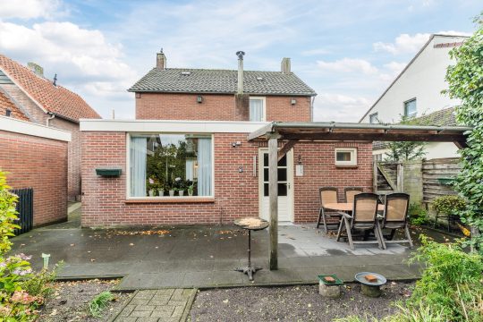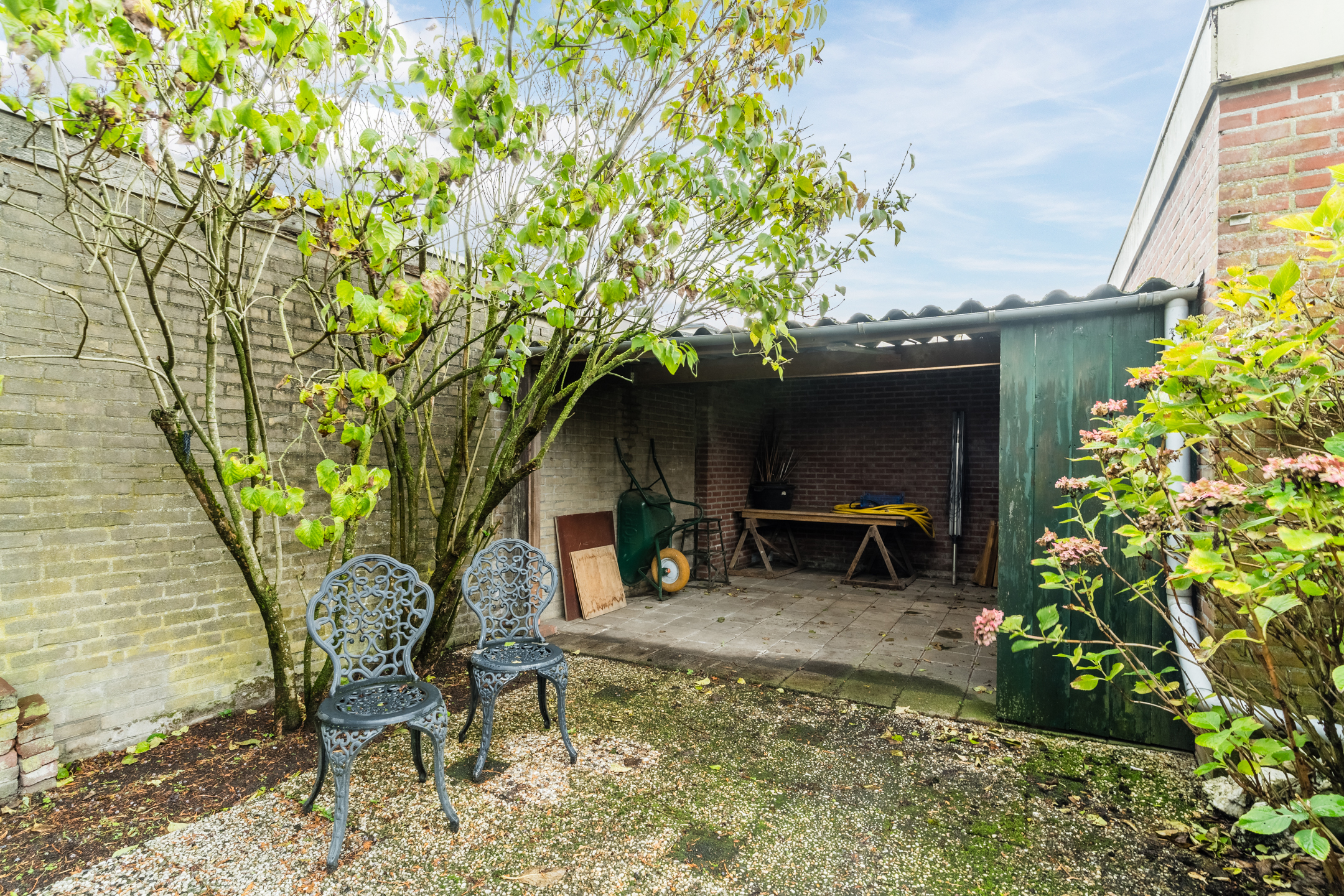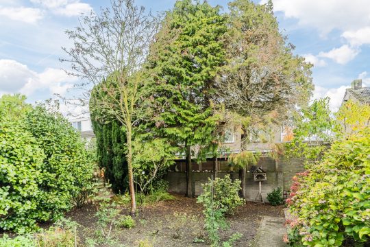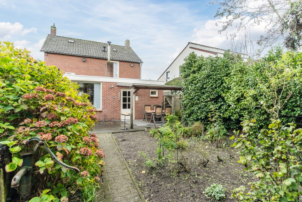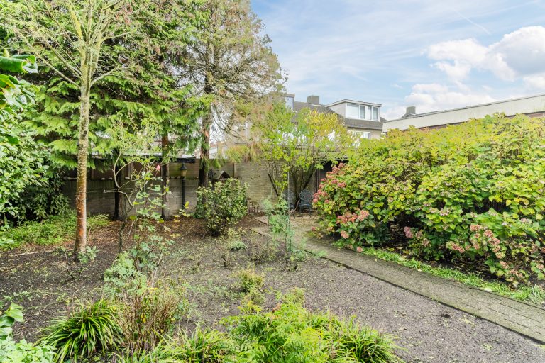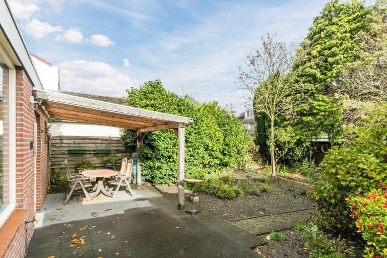 De achtertuin is bijzonder privacyrijk en fraai ingericht met bestrating, groene beplanting, twee overkappingen, en een achterom met poort. Hier geniet je in alle rust van het buitenleven.