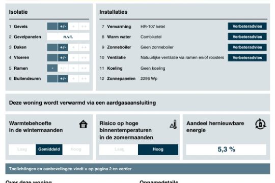 – de woning is voorzien van 8 zonnepanelen (395 Wp per stuk, geplaatst in 2022).