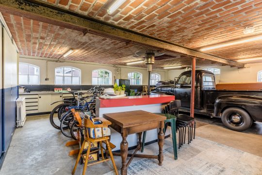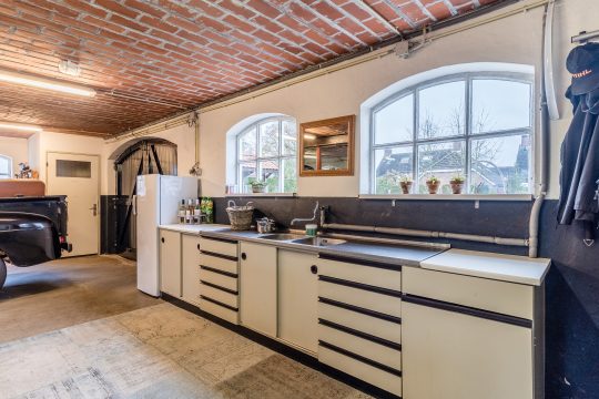 Aansluitend kom je in een van de meest verrassende onderdelen van de woning: de voormalige stalruimte, die inmiddels is omgetoverd tot een gigantische multifunctionele ruimte. Dankzij de aanwezigheid van een grote kastenwand, een keukenblok, een toiletruimte, krachtstroom en een ruime bergzolder is deze ruimte geschikt voor werkelijk talloze doeleinden. Je kunt hierbij denken aan een atelier, praktijkruimte, kantoor, hobbyruimte, mantelzorg, opslag of zelfs een tweede wooneenheid, afhankelijk van de wensen en mogelijkheden volgens de gemeente. Deze flexibiliteit maakt de woonboerderij bijzonder toekomstbestendig en aantrekkelijk voor uiteenlopende woon- en werkbehoeften.