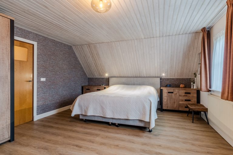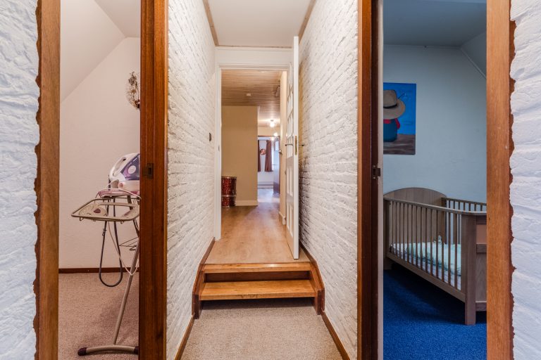 De eerste verdieping beschikt daarnaast over maar liefst zes slaapkamers, wat uitzonderlijk veel mogelijkheden biedt voor grote gezinnen, thuiswerkers of hobbyisten. De kamers zijn licht en praktisch ingedeeld, maar kunnen desgewenst worden samengevoegd tot grotere ruimtes, waardoor je bijvoorbeeld een royale master bedroom, een speelkamer, een kantoor of een extra logeerkamer kunt creëren. Wat je woonwensen ook zijn, deze verdieping geeft je de ruimte om ze te verwezenlijken.