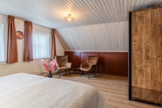 Boven het voormalige stalgedeelte bevindt zich bovendien een ruime bergzolder met toegang tot een extra vliering, wat zorgt voor geweldige opbergmogelijkheden.