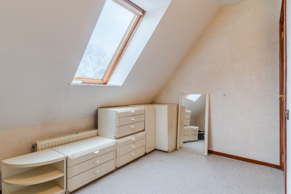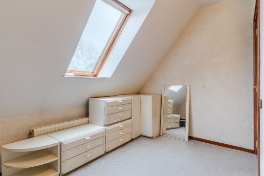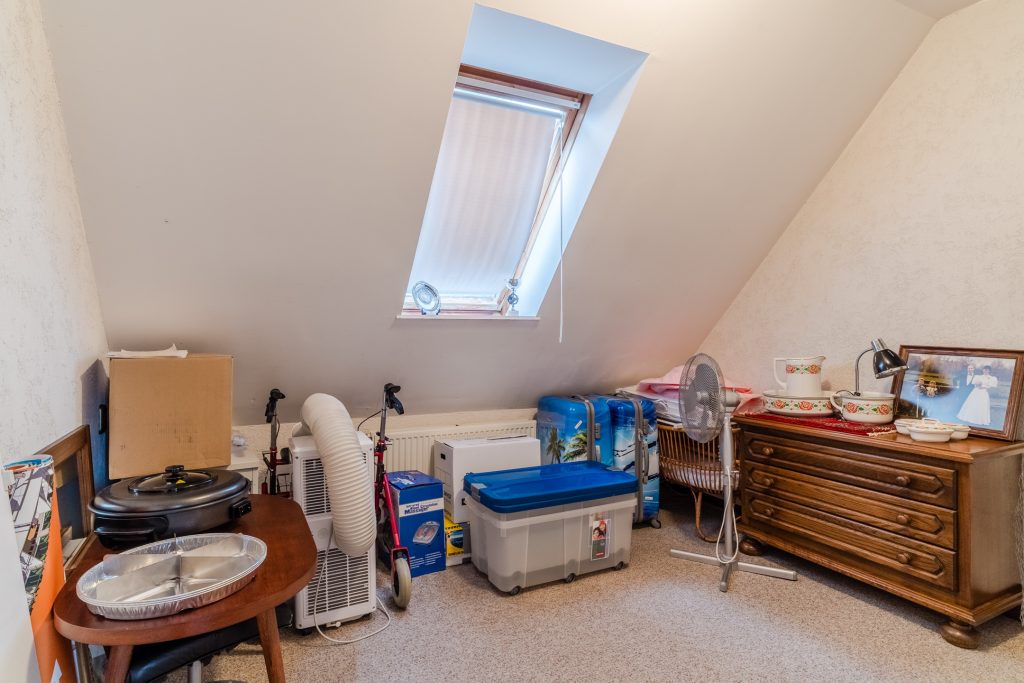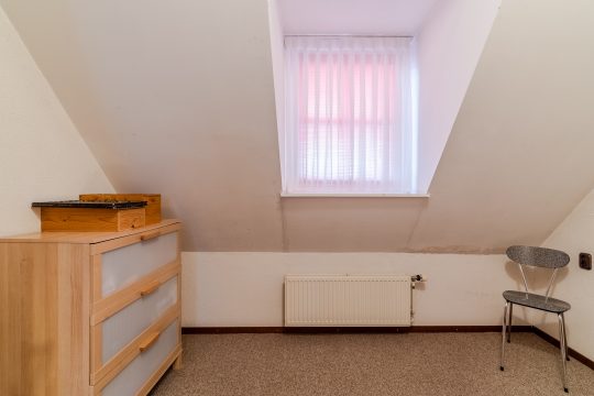 Via een vlizotrap bereik je de tweede verdieping, waar een grote bergzolder zich bevindt. Deze ruimte is ideaal voor spullen die je uit het zicht wilt bewaren, zoals seizoensartikelen of koffers, en hier vind je tevens de mechanische ventilatie-unit. De extra opslagmogelijkheden zorgen ervoor dat de rest van de woning opgeruimd en overzichtelijk kan blijven.