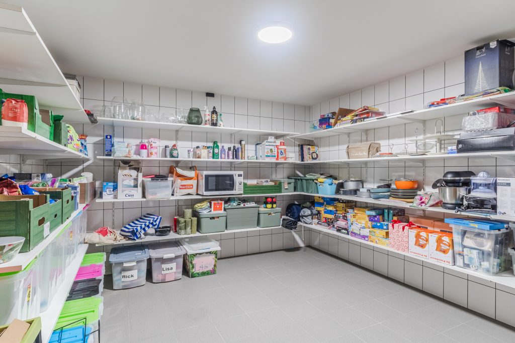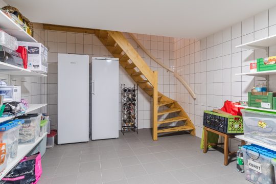 De praktische bijkeuken is eveneens luxe afgewerkt en voorzien van de hybride warmtepomp installatie (Intergas/Daikin, 2026), vloerverwarmingspomp, wasmachine-aansluitingen op hoogte, uitstortgootsteen en een centrale stofzuiginstallatie.