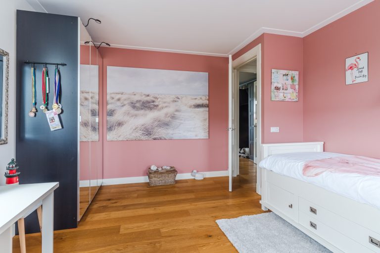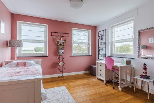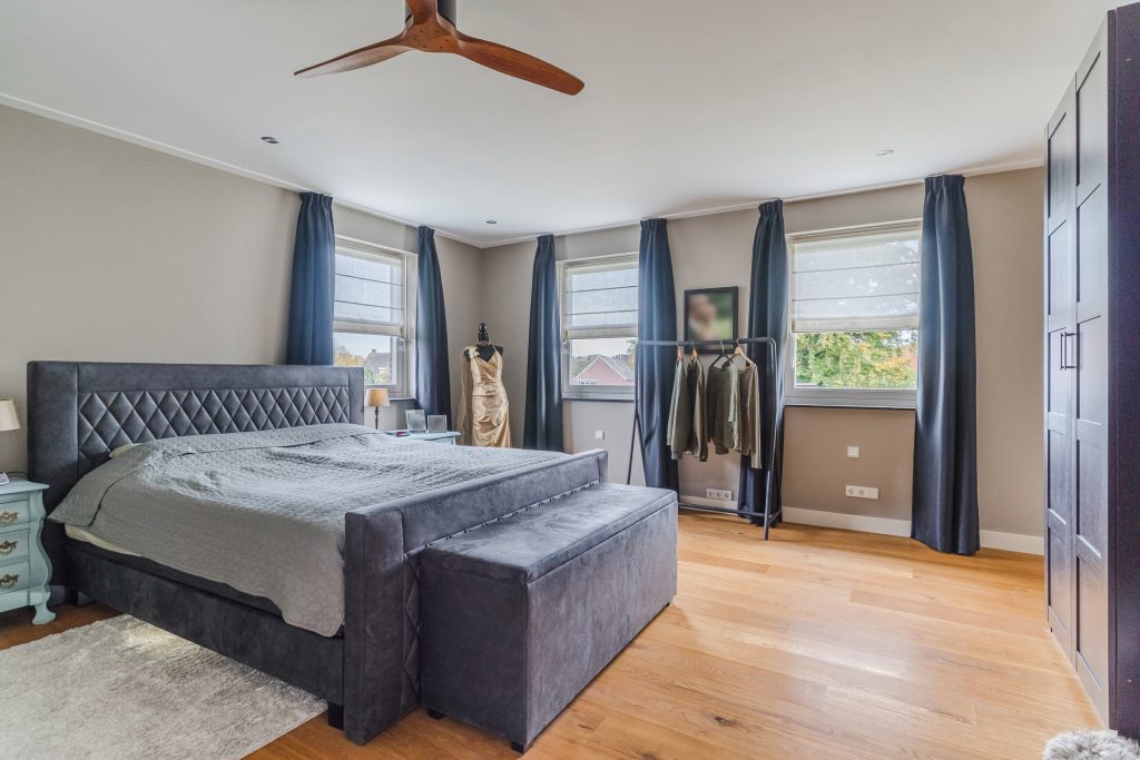 De master bedroom (ca. 25 m²) is aan de voorzijde gelegen en biedt ruimte aan een king-size bed en een grote kastenwand. De kamer beschikt over tv-aansluitingen, inbouwspots en directe toegang tot de badkamer. De tweede slaapkamer (17 m²) biedt een prachtig uitzicht over de landerijen. De derde slaapkamer is eveneens van een goed formaat en fungeert als slaapkamer. Slaapkamer 4 is de kleinste van de vier maar kan zeker gebruikt worden als volwaardige slaapkamer.