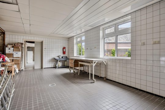 De voormalige bakkerij is zeer ruim (circa 17 x 6 meter) en biedt daardoor vele gebruiksmogelijkheden voor een zelfstandige of hobby-ist. Ook zijn er volop mogelijkheden om deze ruimte om te bouwen tot mantelzorgwoning. De ruimte beschikt over een royale koelcel en vlizotrap naar een zeer grote bergzolder. Aan de achterzijde is er toegang tot een inpandige berging, welke ook vanuit de tuin toegankelijk is.
