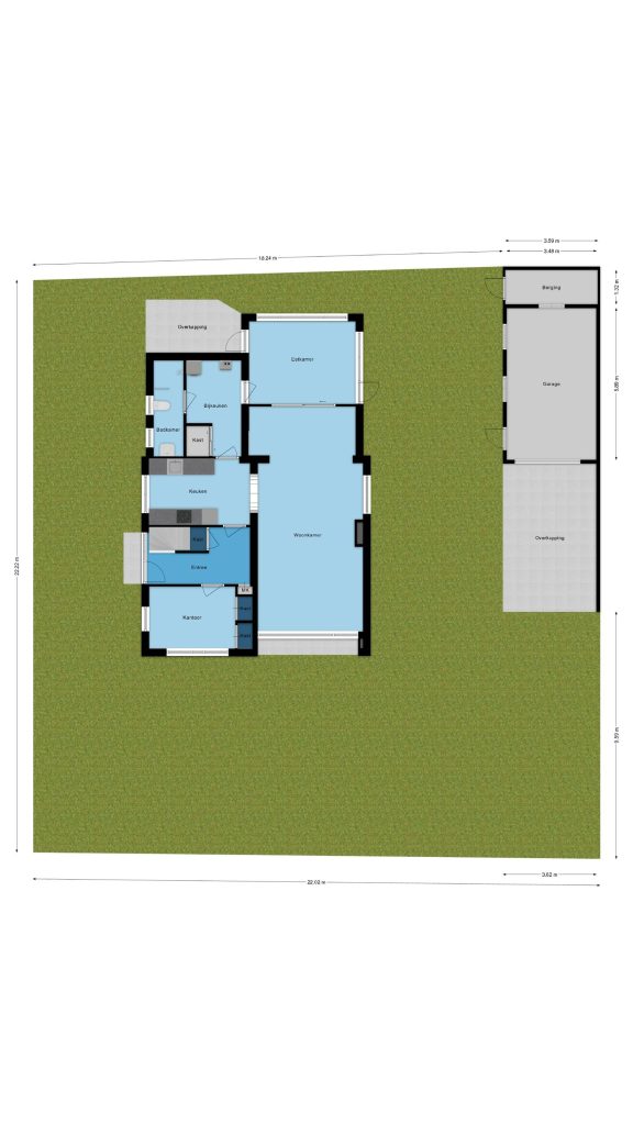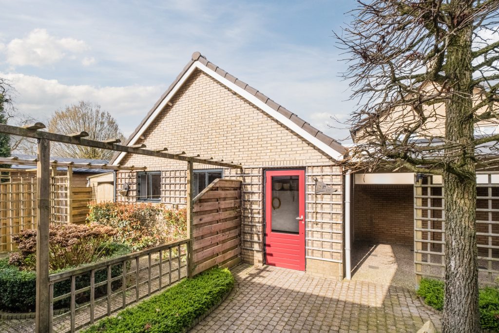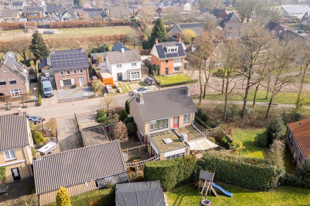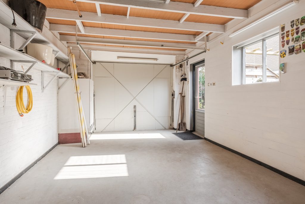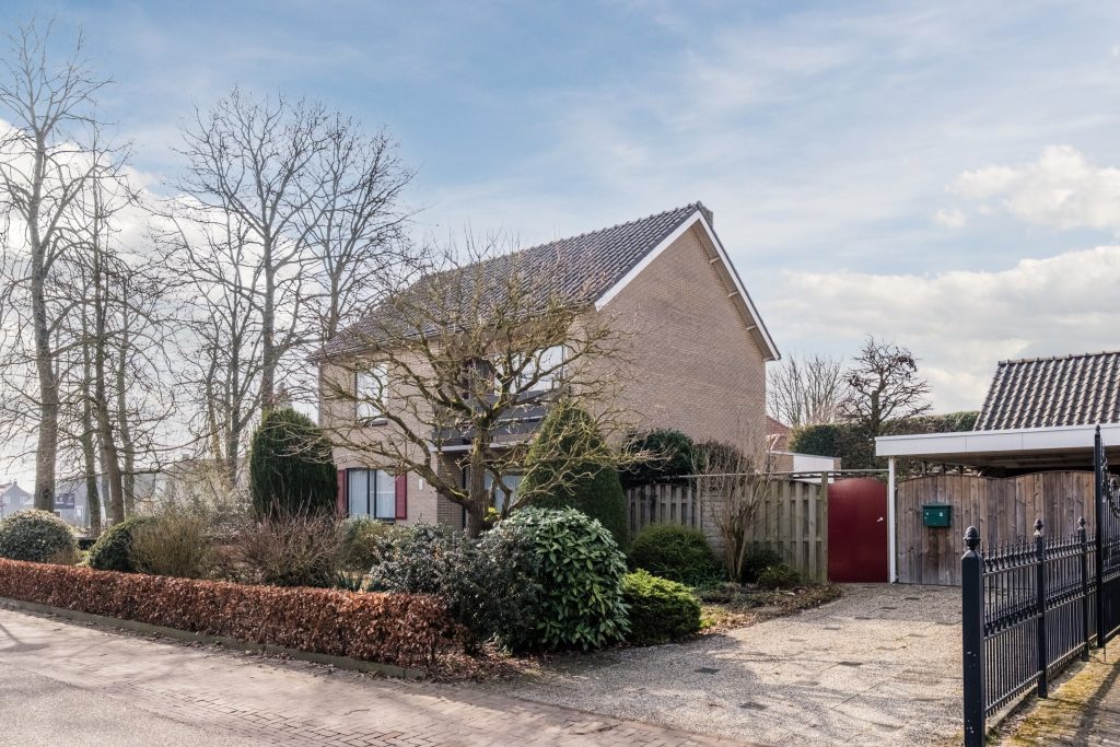 De achtertuin is vrij gelegen en grenst aan groen, wat zorgt voor rust en privacy. De tuin is voorzien van bestrating, vaste beplanting en een overdekt terras waar je beschut kunt zitten. Vanuit de tuin heb je toegang tot de garage met carport en een riante oprit.