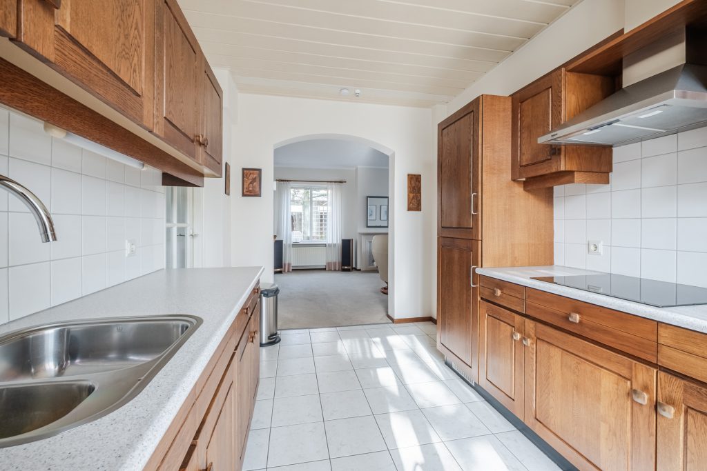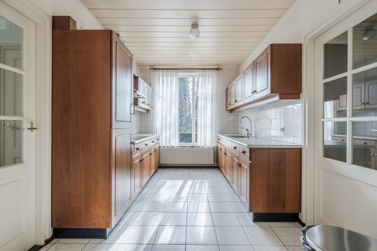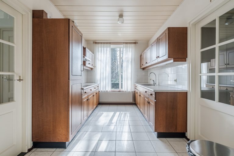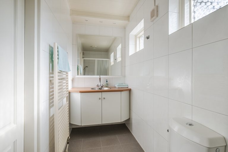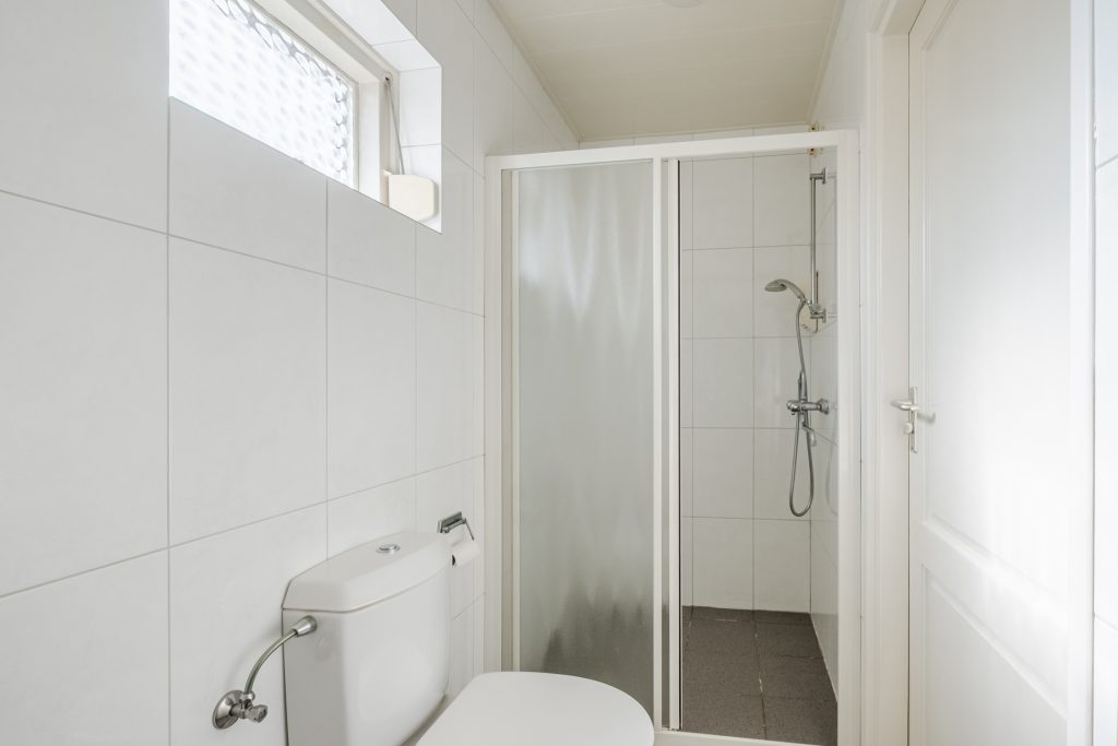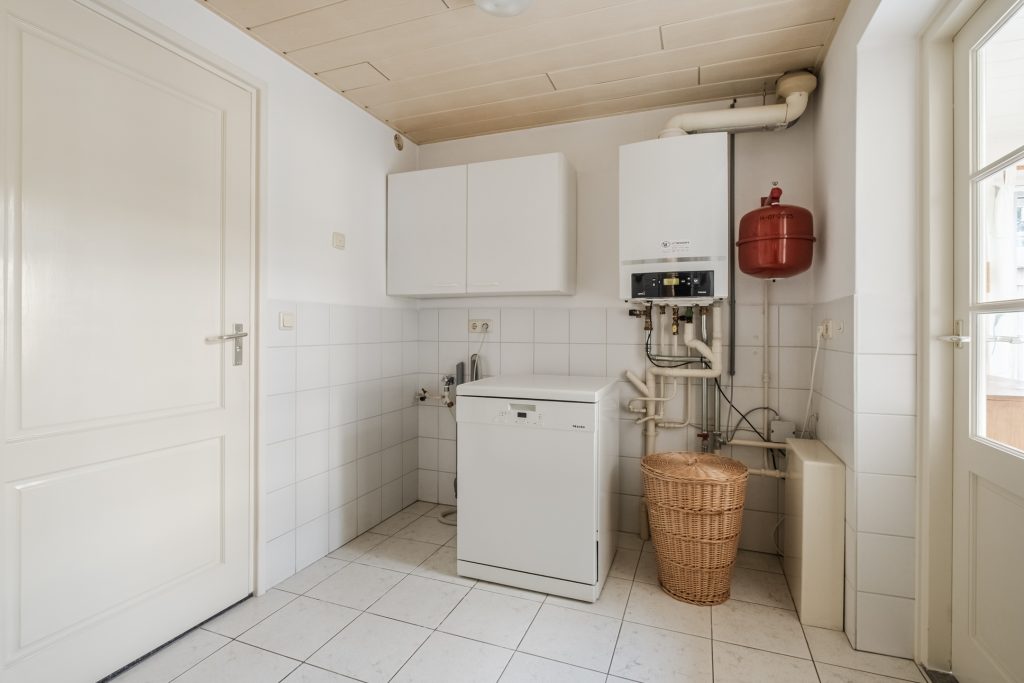 Aansluitend ligt de bijkeuken met witgoedaansluitingen en de Cv ketel van Nefit uit 2013. Vanuit hier bereik je de badkamer op de begane grond, voorzien van wastafel, closet en douche.