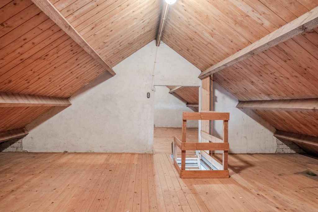 Via een vlizotrap bereik je de zolderverdieping. Deze ruimte biedt voldoende hoogte en oppervlak om met relatief eenvoudige aanpassingen een vierde slaapkamer of extra werkruimte te realiseren.