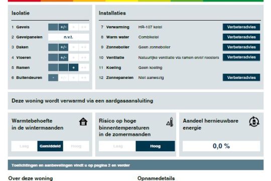 – de woning is voorzien van spouwmuurisolatie.