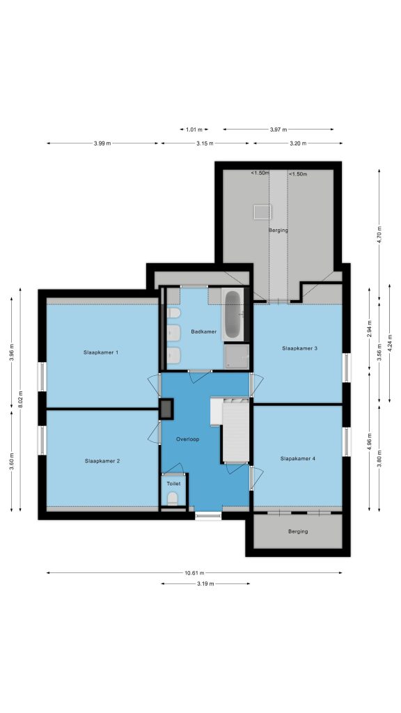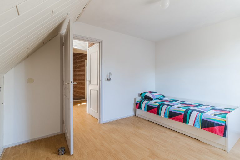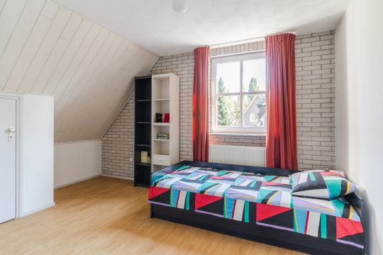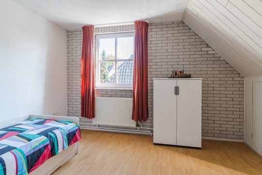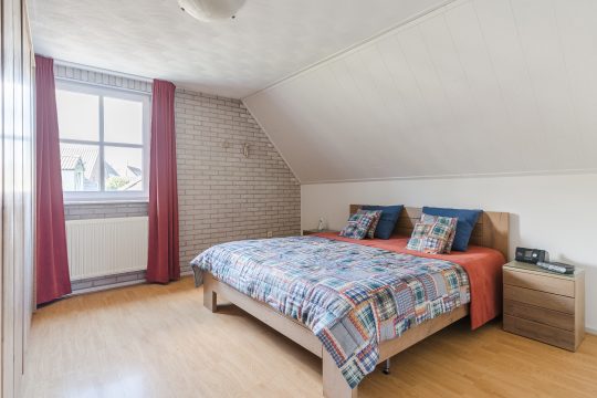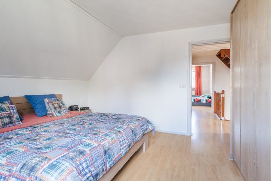 Op de eerste verdieping bevinden zich vier ruime slaapkamers, allen voorzien van een moderne laminaatvloer. De slaapkamers zijn van goed formaat, waardoor er met gemak een master bedroom en drie volwaardige slaapkamers gerealiseerd kunnen worden. Een slaapkamer beschikt over ingebouwde kasten onder de schuine kant. Op de overloop bevindt zich een separaat toilet. De houten kozijnen zijn voorzien van een draai-kiepsysteem. Daarnaast is er een extra bergzolder bereikbaar vanuit één van de slaapkamers.