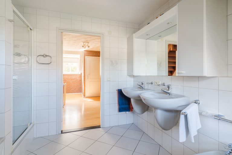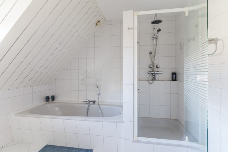 De badkamer is ruim en keurig afgewerkt, waarbij optimaal gebruik is gemaakt van de beschikbare ruimte. Twee losse wastafels zorgen ervoor dat de badkamer door meerdere personen tegelijk kan worden gebruikt. Daarnaast is er een groot badkamermeubel met extra opbergruimte aanwezig. De douchecabine is uitgerust met een hand- en regendouche, en er is een ligbad voor ultieme ontspanning. Verder beschikt de badkamer over een bidet en een radiator. Als kers op de taart is de ruimte voorzien van vloerverwarming.