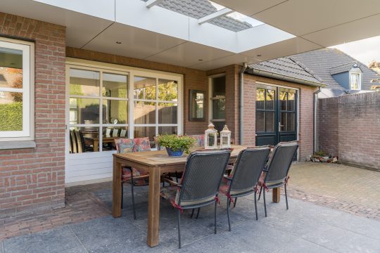 – Twee buitenterrassen, waaronder een overdekt terras met inbouwspots en lichtstraat;