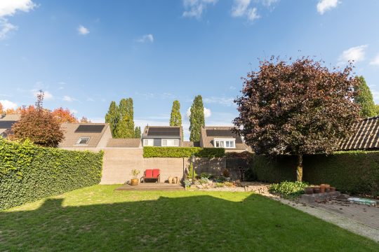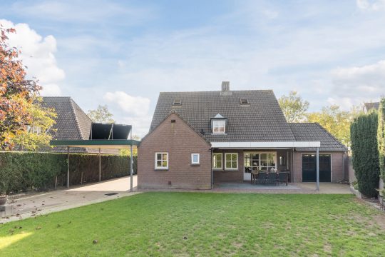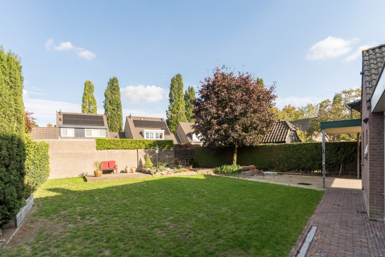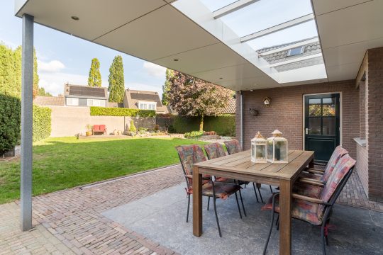 De achtertuin is één van de visitekaartjes van de woning met volop privacy, gazon en vaste beplanting. Het overdekte terras, voorzien van keramische tegels, inbouwspotjes en lichtstraat, vormt een prettige plek om buiten te zitten. Aan de achterzijde bevindt zich een tweede terras, waar je de hele dag kunt genieten van de zon. Verder beschikt de woning over een geïsoleerde berging met betegelde vloer, een ruime oprit en een carport, elektra en bergvliering. Daarnaast heb je toegang tot de eigen oprit met riante carport (ideaal voor caravan of auto).