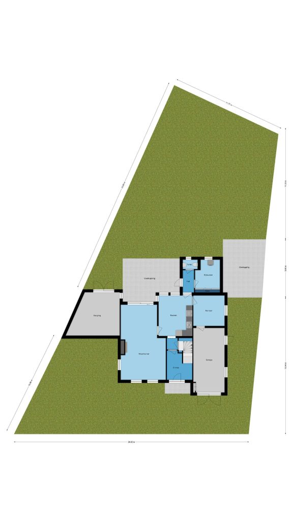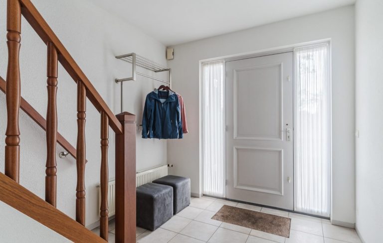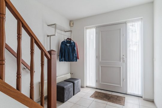 Via de eigen oprit bereik je de ruime, overdekte entree. De ruime entreehal is voorzien van een tegelvloer met vloerverwarming, stucwerk wanden en stucwerk plafonds. Tevens is er ruimte voor een garderobe en heb je toegang tot zowel de eerste verdieping als woonkeuken.