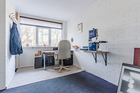 Aan de voorzijde bevindt zich bovendien een heerlijke aparte speel- of werkkamer die – net als de woonkamer – is gezegend met een fraai vrij uitzicht. Deze kamer leent zich perfect voor thuiswerken, studeren of het creëren van een rustige speelplek.