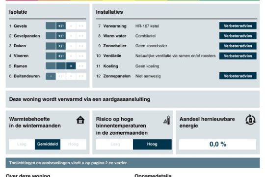 – de woning is voorzien van dak-, spouwmuur- en vloerisolatie.
