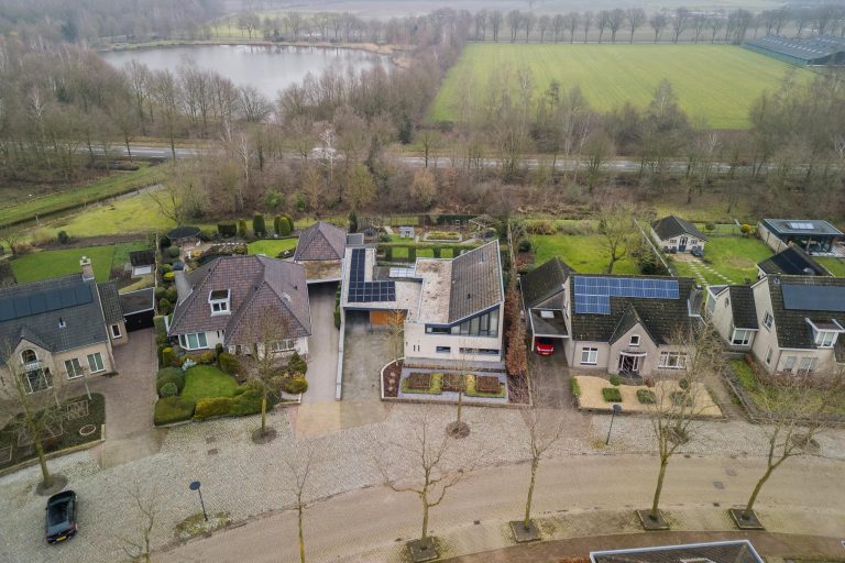 Op een prachtig perceel van ruim 800 m² in een gewilde, verkeersarme woonomgeving ligt deze onder fraaie architectuur gebouwde vrijstaande woning. De woning beschikt op de begane grond over een erg riante, gemoderniseerde leefruimte met half-open keuken, mooie aangebouwde serre en royale slaapkamer met luxe badkamer. Daarnaast heeft de woning nog eens 2 slaapkamers en een 2e badkamer op de verdieping. Kers op de taart vormt de mooi aangelegde, volop privacy biedende achtertuin met garage, carport en een eigen ingang aan de achterzijde welke met de auto is te bereiken.